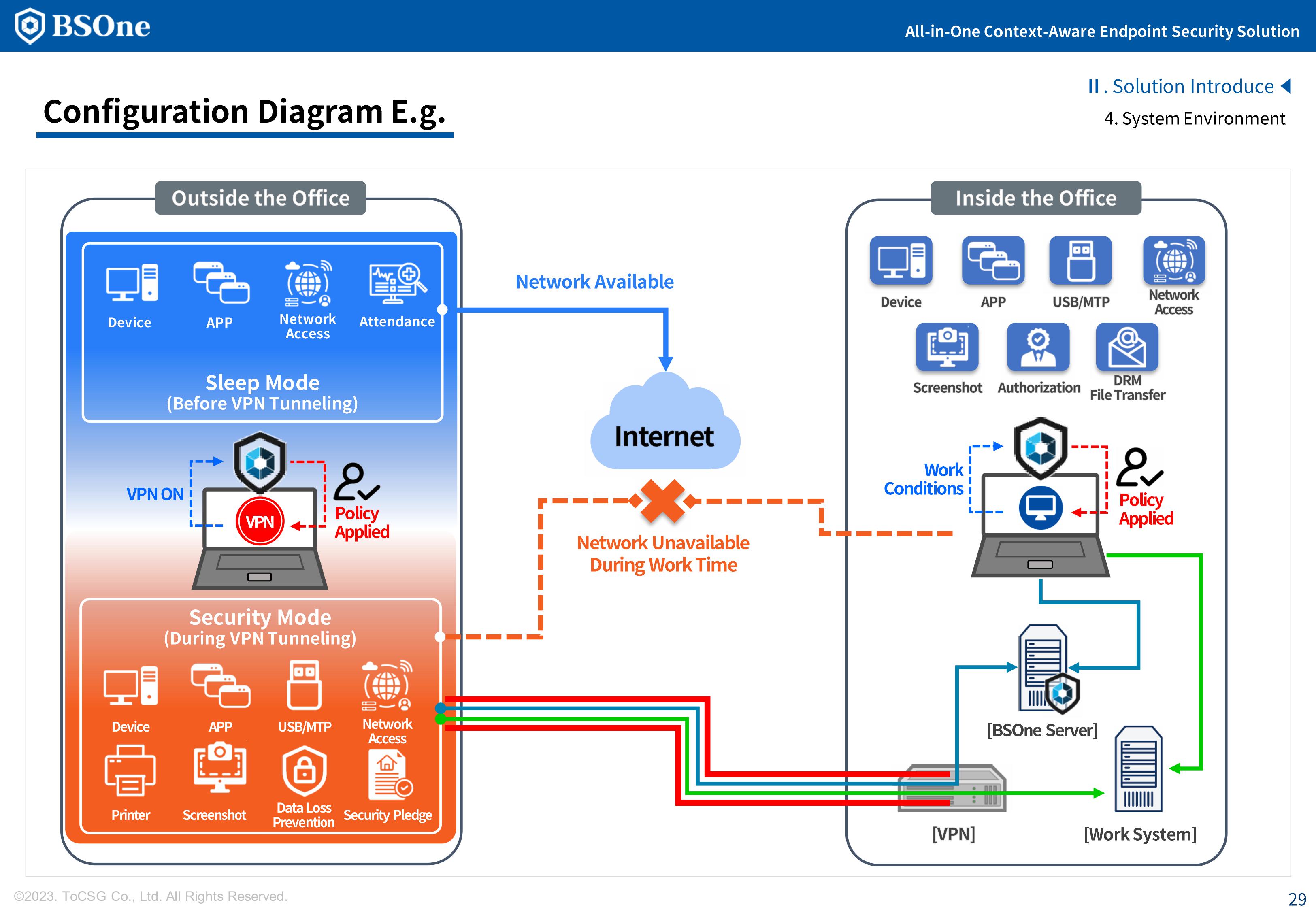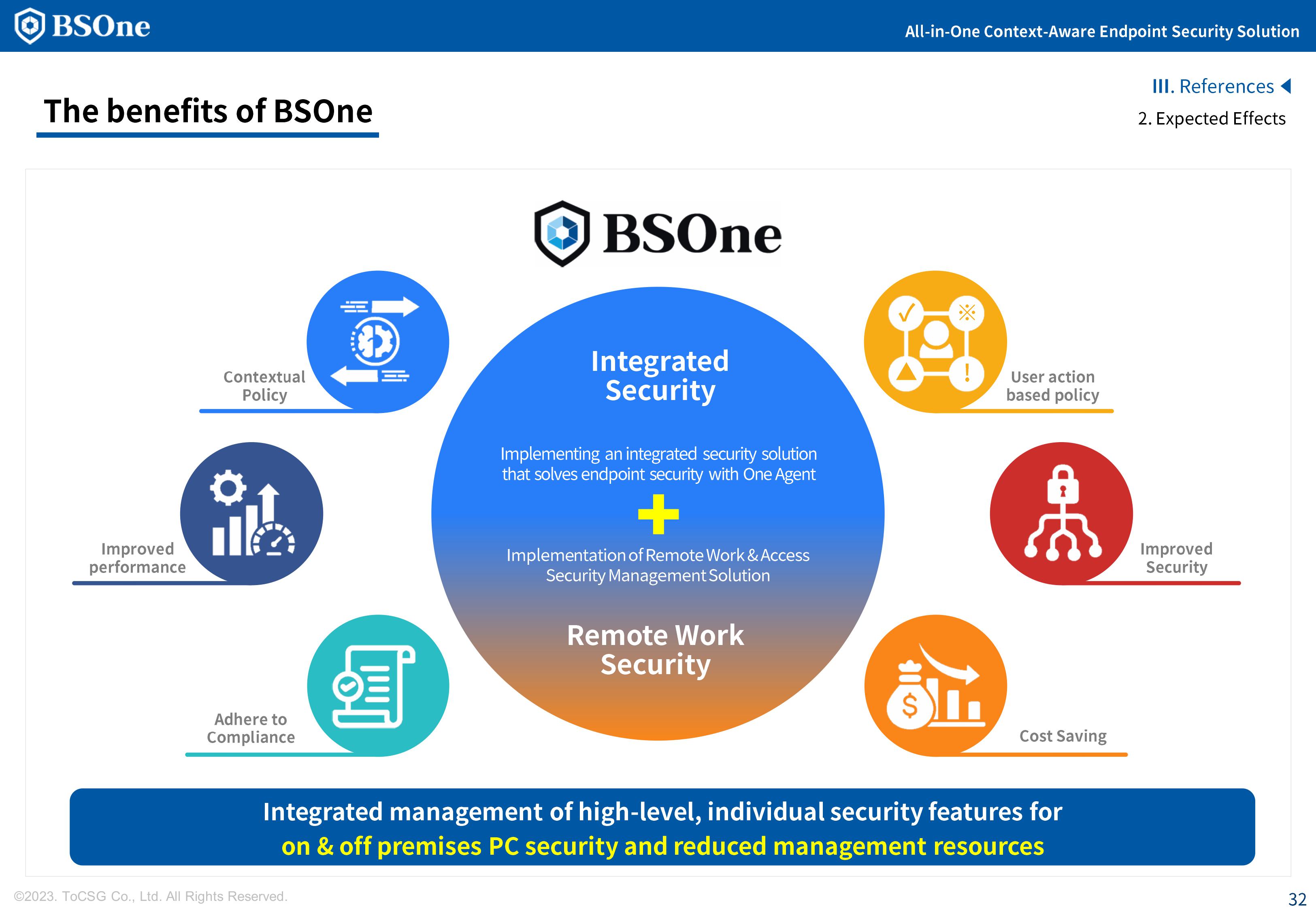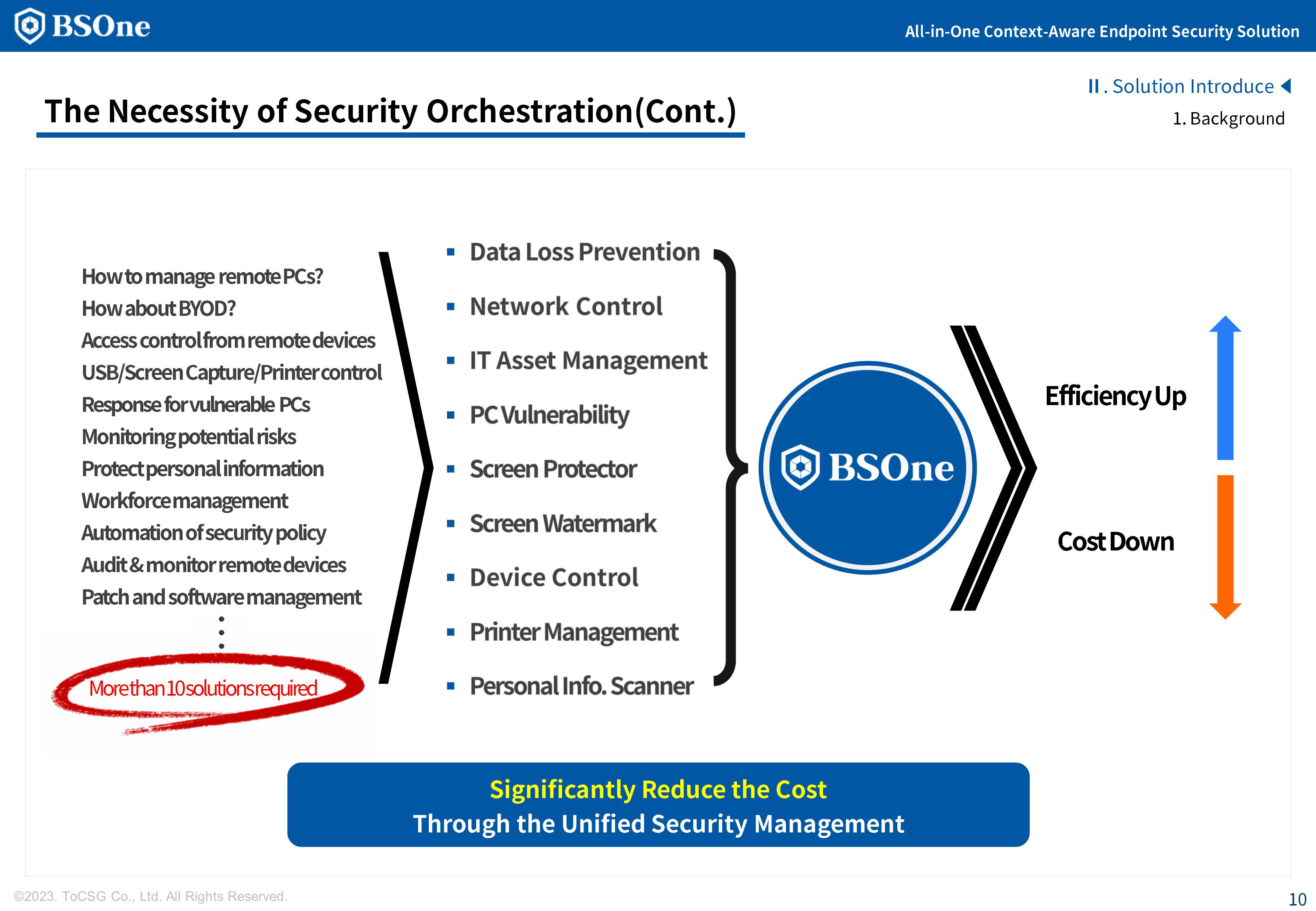 BSOne is an integrated PC security solution that provides various security features such as DLP, media control, and DRM with a single agent.