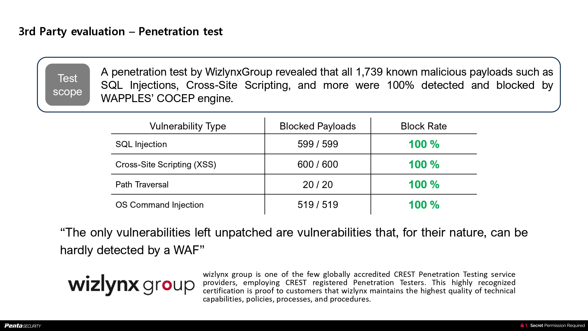 WAPPLES is an AI-powered web application firewall that blocks web attacks without relying on signatures. It ensures robust protection against threats such as SQL injection and XSS with industry-leading accuracy.