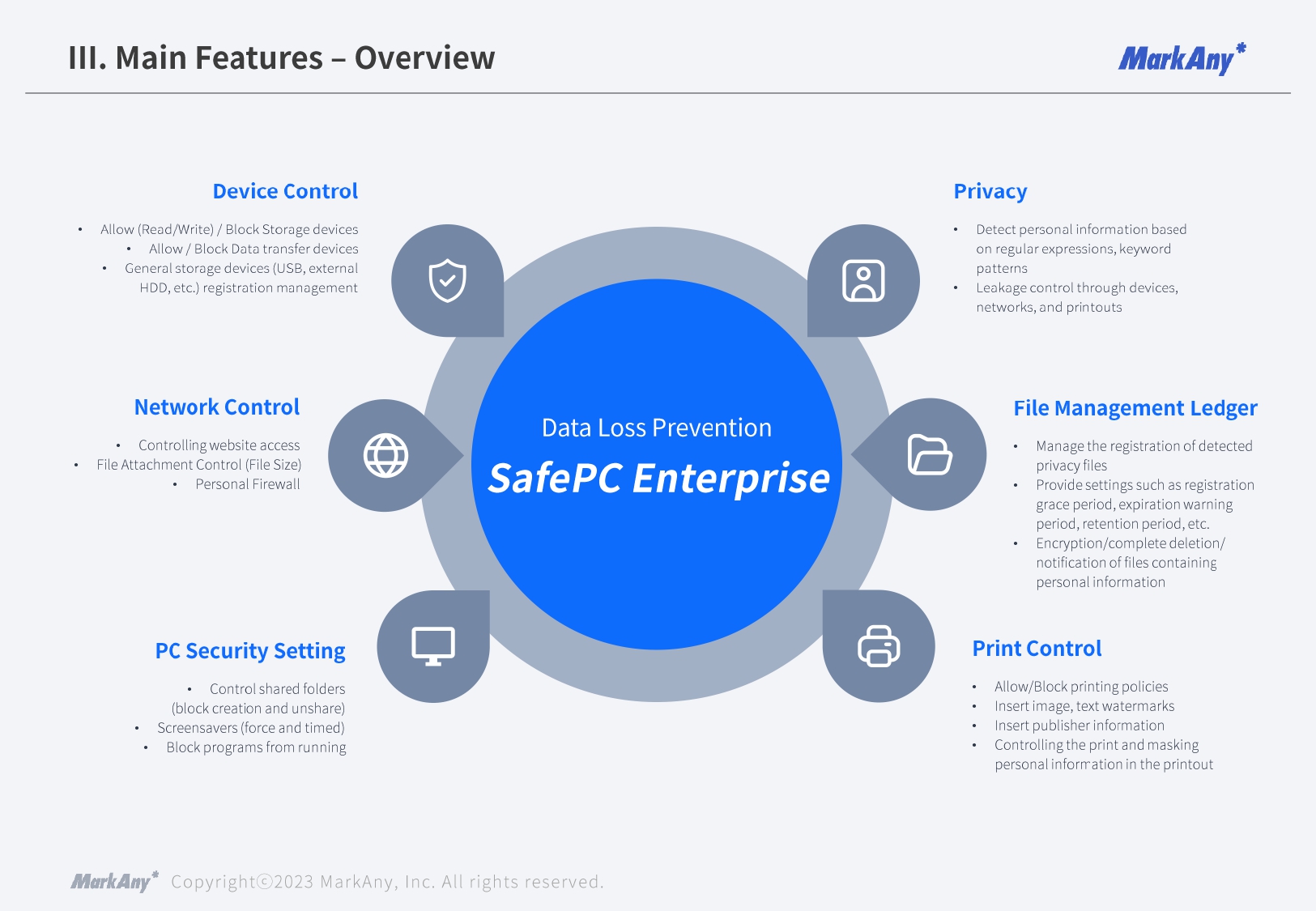 MarkAny ProtectGuard DLP is a data loss prevention solution that safeguards sensitive corporate information from unauthorized transfers or leaks. It monitors and controls various channels such as documents, emails, USB devices, and printers in real time to enhance information security.